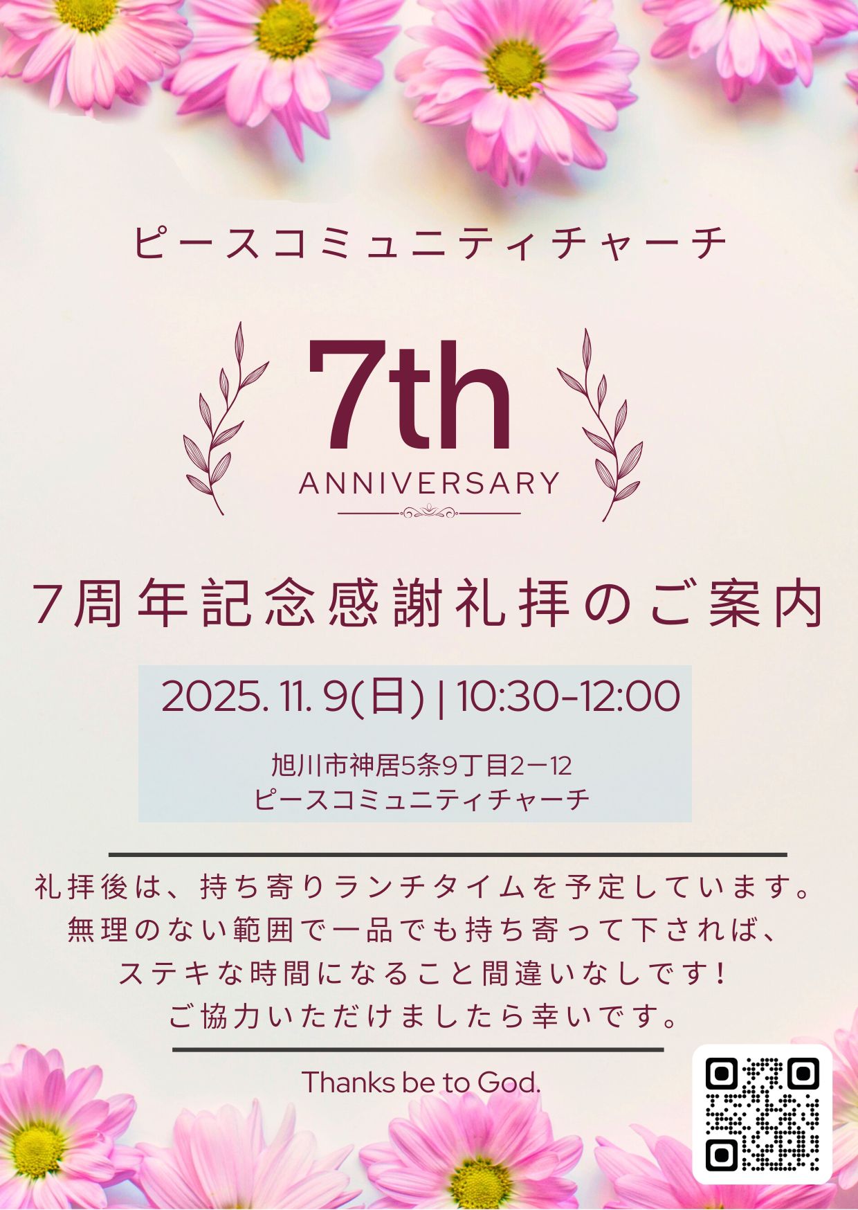2025年11月9日の礼拝は7周年記念感謝礼拝です。