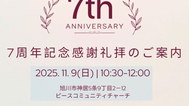 お知らせ 2025年11月9日の礼拝は7周年記念感謝礼拝です。